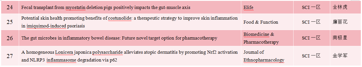| 11 | Convallatoxin protects against dextran sulfate sodium-induced experimental colitis in mice by inhibiting NF-κB signaling through activation of PPARγ. | 金学军 | Pharmacol Res. 2019 ,147:104355 | SCI 2区 |