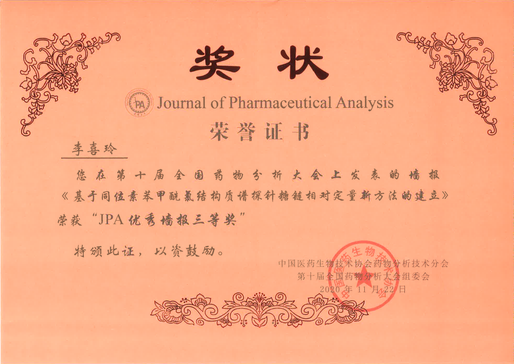 本次墙报奖是闵俊哲教授课题组,自2015年起在“全国药物分析大会”、“全国分析化学年会”、“手性中国”等全国性分析学会上第七次连续获奖,不仅在全国性学术会议上提高了糖心vlog官方