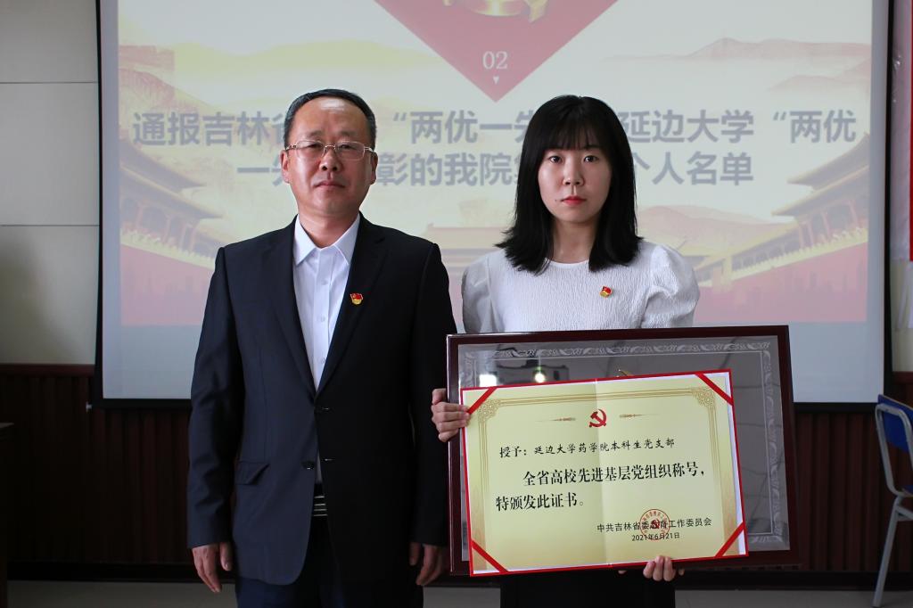 副院长郑昌吉为朴惠顺、李海兰、李学淳、全殷晟和中药民族药学与药剂学联合党支部颁奖