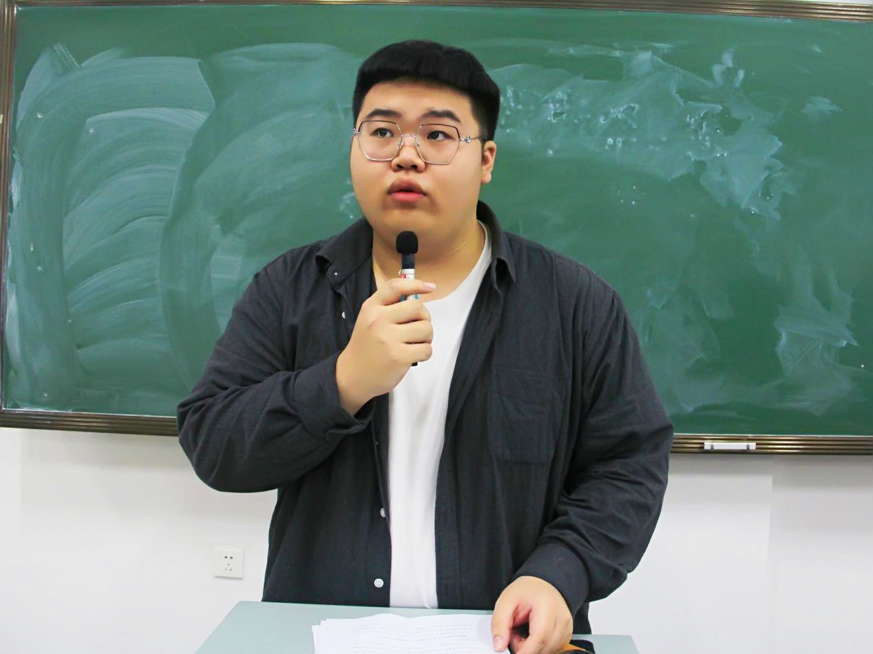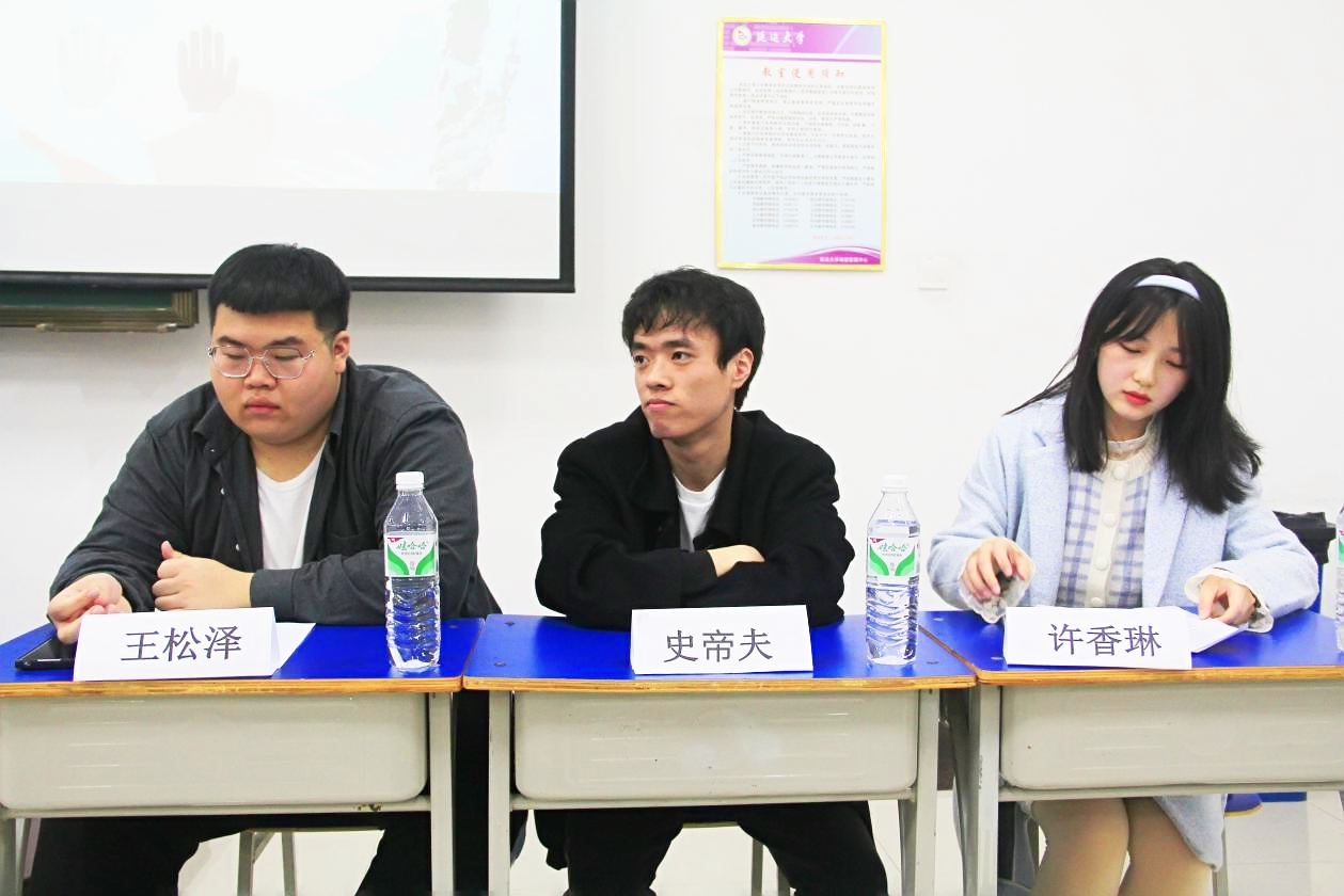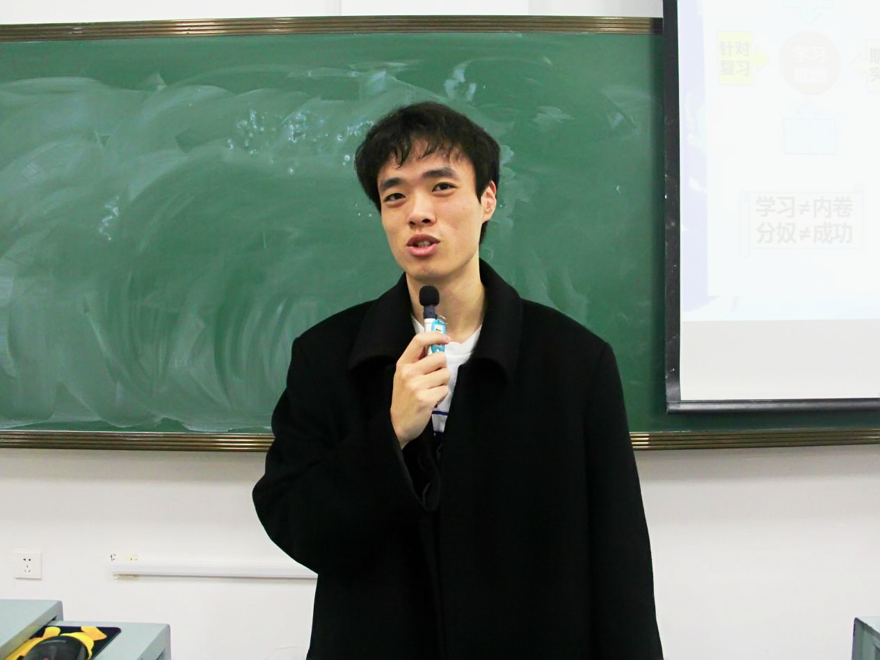 王松泽同学围绕“如何确立学习的主导地位”、“学生的本职工作就是学习”等两方面进行讲述。强调了尽早明确“想要什么”和确立在大学校园生活中“想得到何种锻炼”的重要性,希望同学们要有目标意识,并为之努力,提升执行力,避免没有方向或不努力带来的过度焦虑。