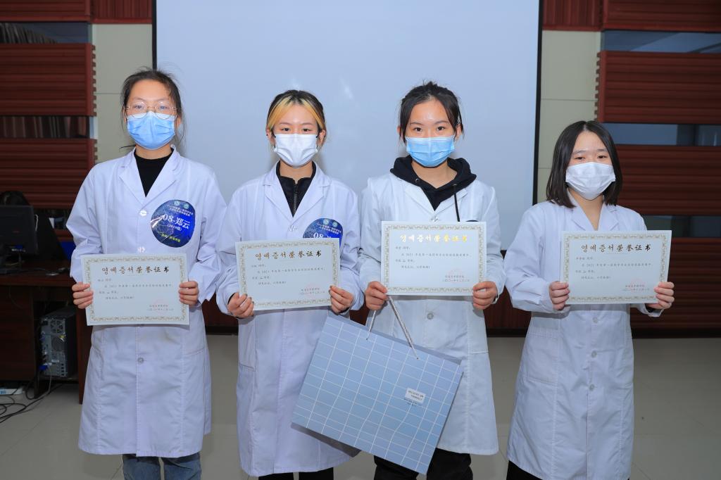 在近60分钟的激烈比拼中,各参赛队伍的同学们展现出了扎实的实践技能操作基本功,表现出了团结一心、勇于创新的精神风貌。最后,评委共评选出一等奖1支队伍,二等奖2支队伍,三等奖5支队伍,并由参会领导老师分别为获奖团队颁发证书和奖品。