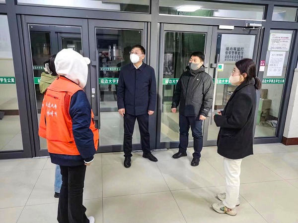 领导和辅导员老师们一同深入宿舍走访,慰问返校同学,第一时间为学生送去温暖。