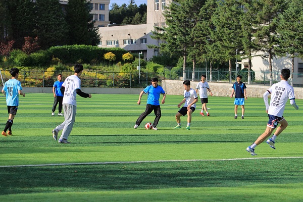 中午11:30,举行羽毛球友谊赛,老师和学生随机组成12支师生混双队伍,实施21分制和三局两胜,6场比赛结束后,教师混双和学生混双表演赛将友谊赛推向高潮。下午16:00,举行足球友谊赛,比赛实施9人制。比赛中,无论是教师还是毕业生均充分展示个人风采,比赛精彩纷呈,教师展现了丰富的经验,毕业生展现了精湛的技术和充沛的体力,友谊赛全程在轻松、愉悦的氛围中进行。