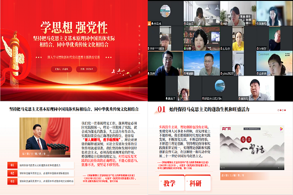 中药民族药学与药剂系联合党支部书记孙金凤利用线上方式,以《坚持把马克思主义基本原理同中国具体实际相结合、同中华优秀传统文化相结合》为题讲专题党课,主要从如何能教育出三观正确的学生、如何理解坚持和发展马克思主义必须同中国具体实际相结合、同中华优秀传统文化相结合等两个方面内容进行讲述。