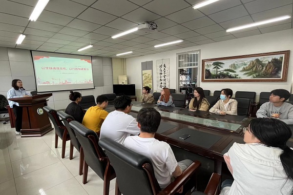 研究生支部书记李海兰在药学楼315会议室,《以学铸魂强党性,以行践知建新功》为题讲专题党课,主要“坚持真理、坚守理想”的思想、“践行初心、担当使命”的政治本色以及作为党员的义务等学习内容进行讲述。