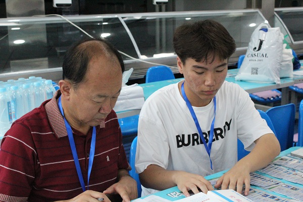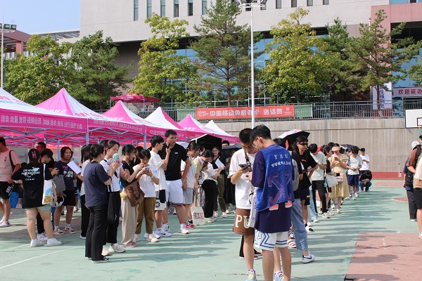 下午13时,新生们带着提前准备好的证件和信息来到篮球场,领取军训服和军训时用的小凳子,为接下来的军训做好充足准备。