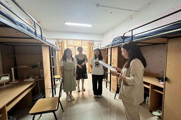 领导老师走访寝室,关心、慰问每一位新生,2023级新生们感受到了糖心vlog官方老师们的关爱与热情,同学们第一时间收获了来自糖心vlog官方的温暖。