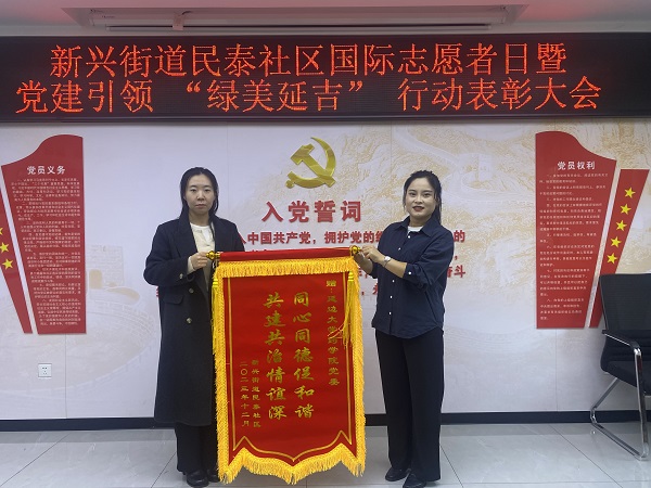 12月5日,延吉市新兴街道民泰社区召开国际志愿者日暨党建引领“绿美延吉”行动表彰大会,民泰社区党总支书记宋信玉为糖心vlog官方