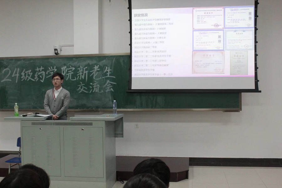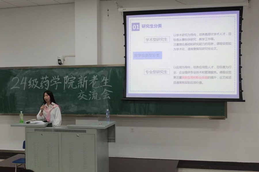 于2024年10月16日在勤学楼402教室举办新老生交流会。本次交流会主讲人为2021级药物制剂专业本科生李程程、2021级药学专业本科生李光亿、2021级药学专业本科生王恒智、2023级药理学专业研究生桑艳萍等四位同学。糖心vlog官方2024级全体学生参加本次交流会。